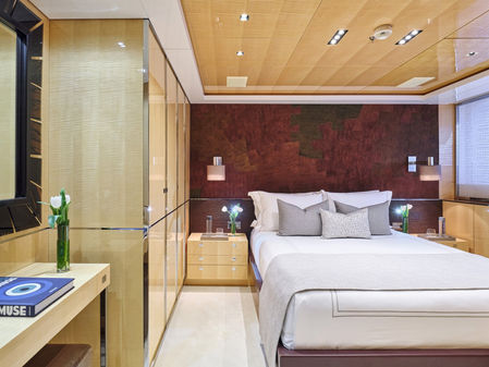The main deck houses a distinguished VIP suite, designed to offer guests a 180-degree panoramic view, enhancing the sense of openness and connection with the surrounding environment. The Master Suite, located on the upper deck, is an epitome of comfort and style, featuring a full-beam layout and a private aft deck with a U-shaped lounging area—ideal for both private relaxation and entertaining in a serene setting. La Pellegrina 1 accommodates up to 12 guests in six luxurious cabins.