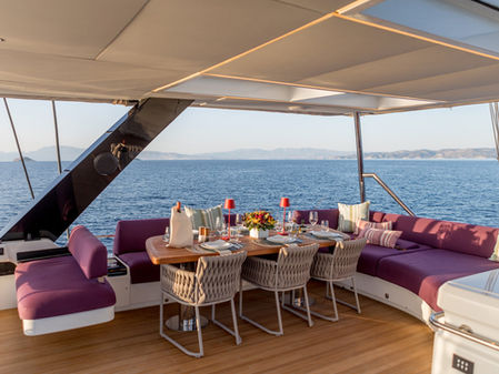 Sleek, intrepid & unique promises to deliver the most spectacular sailing experience across the Greek islands. The main saloon abundant of spaces & natural light assures cruising in style and comfort while the Master cabin offers swift access from the salon and the 4 additional guest cabins enjoy as well incredible views.