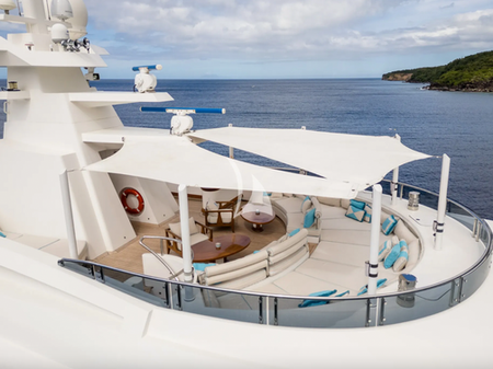 For the best onboard luxury experience, the health and beauty facilities should be together and where most yachts tend to bury these on the lower deck, AXIOMA was designed with the philosophy of affording guests the ultimate well-being experience by giving them the most energizing panoramic views any yacht can offer...those from the top deck! As such the bridge deck features a panoramic air-conditioned gym, massage room, and a steam room. Guest also have direct access to an exterior deck featuring a large Jacuzzi with a bar, offering both in and out of water seating, and a choice of sun pads and loungers.