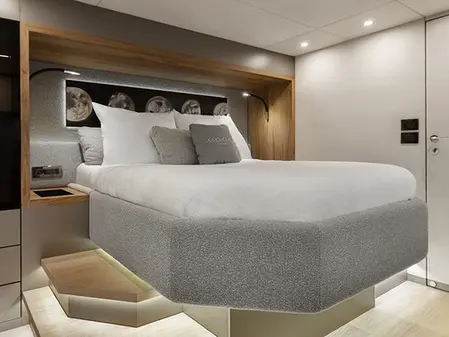 FULL MOON is meticulously designed to accommodate up to 10 guests in 5 luxurious double cabins, ensuring ample space and privacy for families or groups of friends. The layout features a spectacular full-beam owner’s suite and a VIP cabin, each with its own private ensuite bathroom. A dedicated crew operates from separate quarters, guaranteeing discreet and impeccable service throughout your voyage.